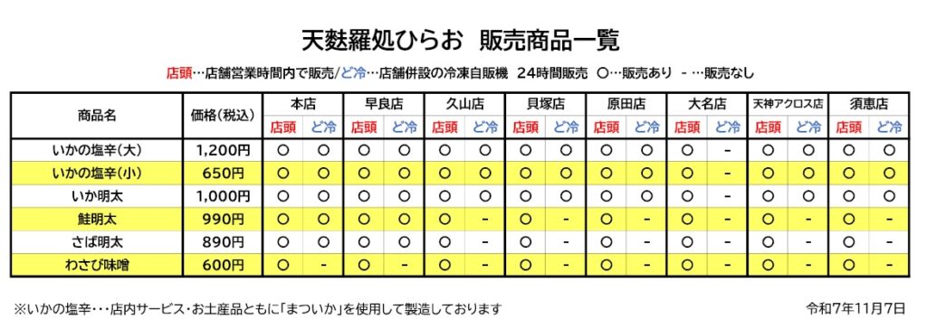 ※2025年11月初旬より、いかの塩辛は店内サービス・お土産品ともに「まついか」を使用して製造しております
