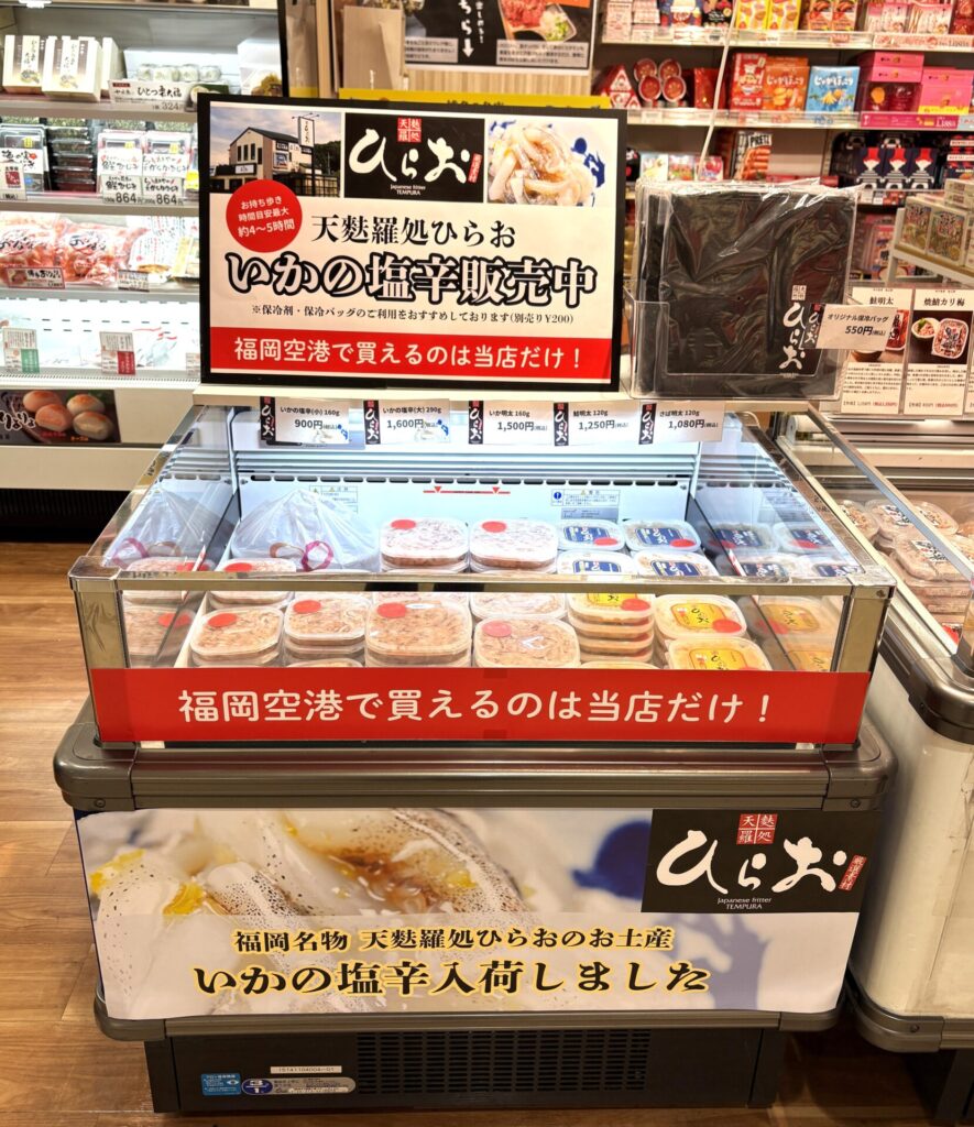 この度、福岡空港国内線内の「SOLAE」各店舗様にて、天麩羅処ひらおの塩辛をはじめとしたお土産商品をお買い求めいただけるようになりました。